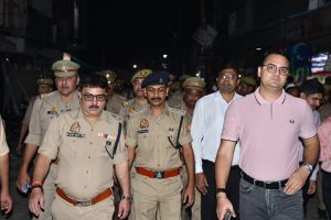 बदायूँ। जिलाधिकारी अवनीश राय ने मंगलवार की रात्रि को वरिष्ठ पुलिस अधीक्षक व अन्य पुलिस व प्रशासनिक अधिकारियों के साथ जनपद में कानून व शांति व्यवस्था के दृष्टिगत लावेला चौक से 6 सड़का से खड़सारी मोहल्ला होते हुए सर्राफा बाजार से शास्त्री चौक से मढ़ई चौक से कोतवाली तक पैदल रूट मार्च किया। उन्होंने कहा कि शांति व्यवस्था बनाए रखना प्रशासन की सर्वोच्च प्राथमिकता है और इसमें किसी भी प्रकार की लापरवाही बर्दाश्त नहीं की जाएगी।